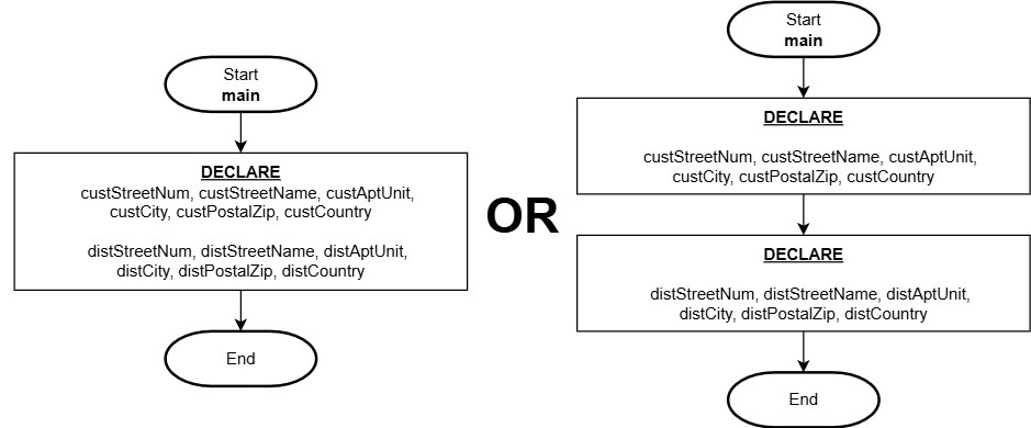 Scenario: A solution needs to represent address information for a customer and a distributor. How would you breakdown this information into appropriate variables?